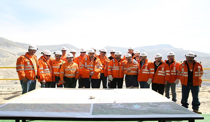 Guo Wenqing inspects the Bambas Copper Mine's slope