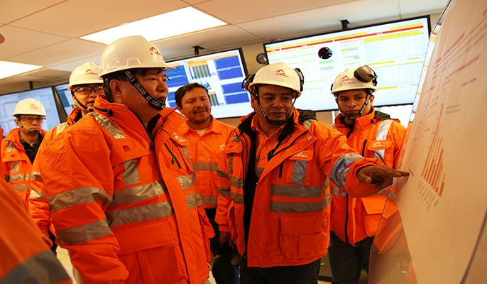 Guo Wenqing inspects the Bambas Copper Mine's processing plant