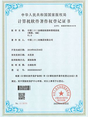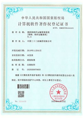 4月20日收到证书,中国二十二冶主持编制开发的《钢结构构件运输管理系统V1.0》和《中国二十二冶钢结构智料管理系统》获得中华人民共和国国家版权局计算机软件著作权登记证书。