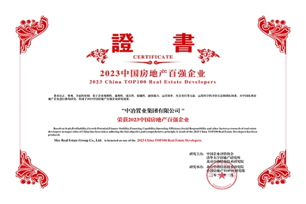 2023年3月16日,由中国企业评价协会、清华大学房地产研究所和北京中指信息技术研究院联合主办的“2023中国房地产百强企业研究成果发布会”召开。本次大会以“涅槃重生,奋楫笃行”为主题,从规模性、盈利性、成长性、稳健性、融资能力、运营效率和社会责任感等方面评价企业的综合实力。中冶置业集团面对市场变革,凭借稳健的经营管理业绩和优异的创新发展成效,企业综合实力持续提升,荣登“2023中国房地产百强企业”第35位,同时荣获“2023中国房地产百强企业盈利性TOP10”“2023中国房地产百强企业稳健性TOP10”“2023中国房地产产品力优秀企业”“2023中国房地产城市更新优秀企业”“2022-2023中国房地产年度社会责任感企业”荣誉称号。