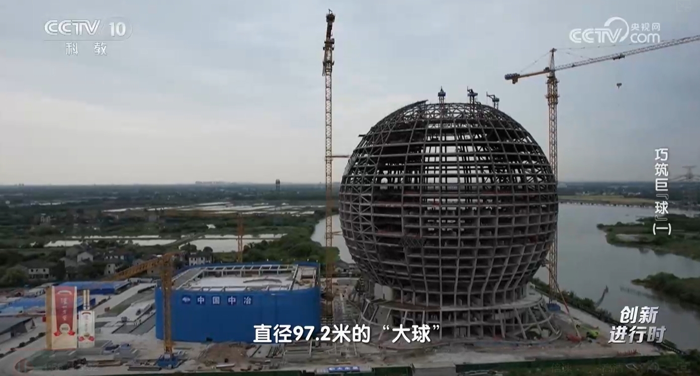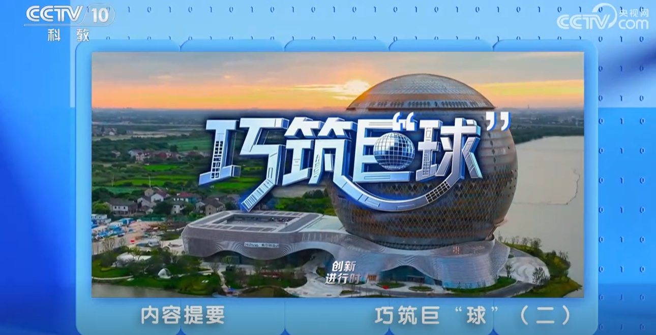央视科教频道CCTV10黄金档节目《创新进行时》5月20日至21日连续两天播出中国五冶湖州太阳酒店项目专题纪录片《巧筑巨“球”》,讲述了五冶项目团队攻克蝴蝶型穹顶网壳整体提升难题,研发国内首个超大球形防排水一体单元式玻璃幕墙系统的故事。
